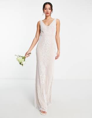 Frock and Frill Bridal premium embellished v neck maxi dress in ivory-White