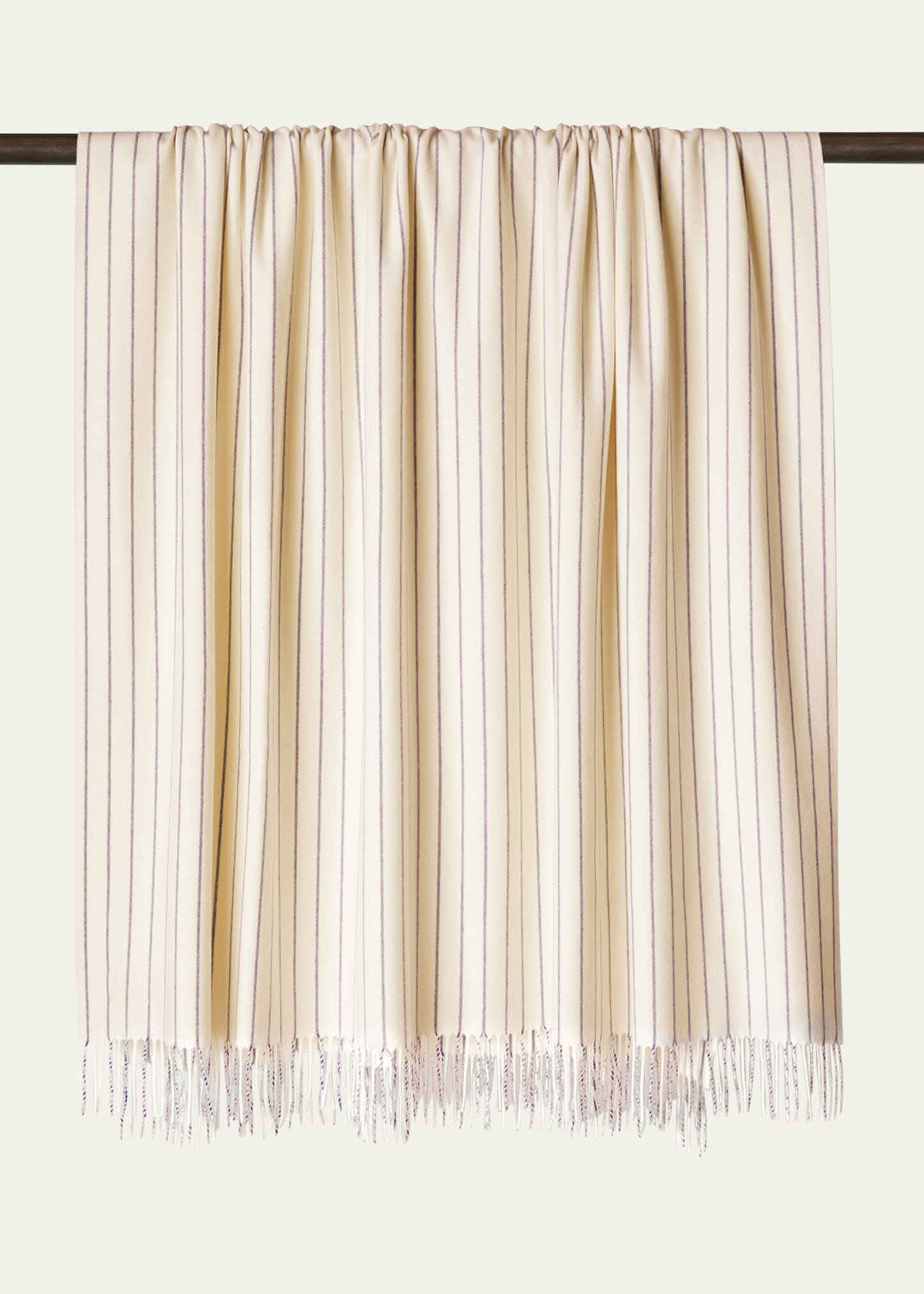Striped blanket is made of cashmere Fringe trim Approx. 78.7"L x 57.1"W Sold individually Made in Italy