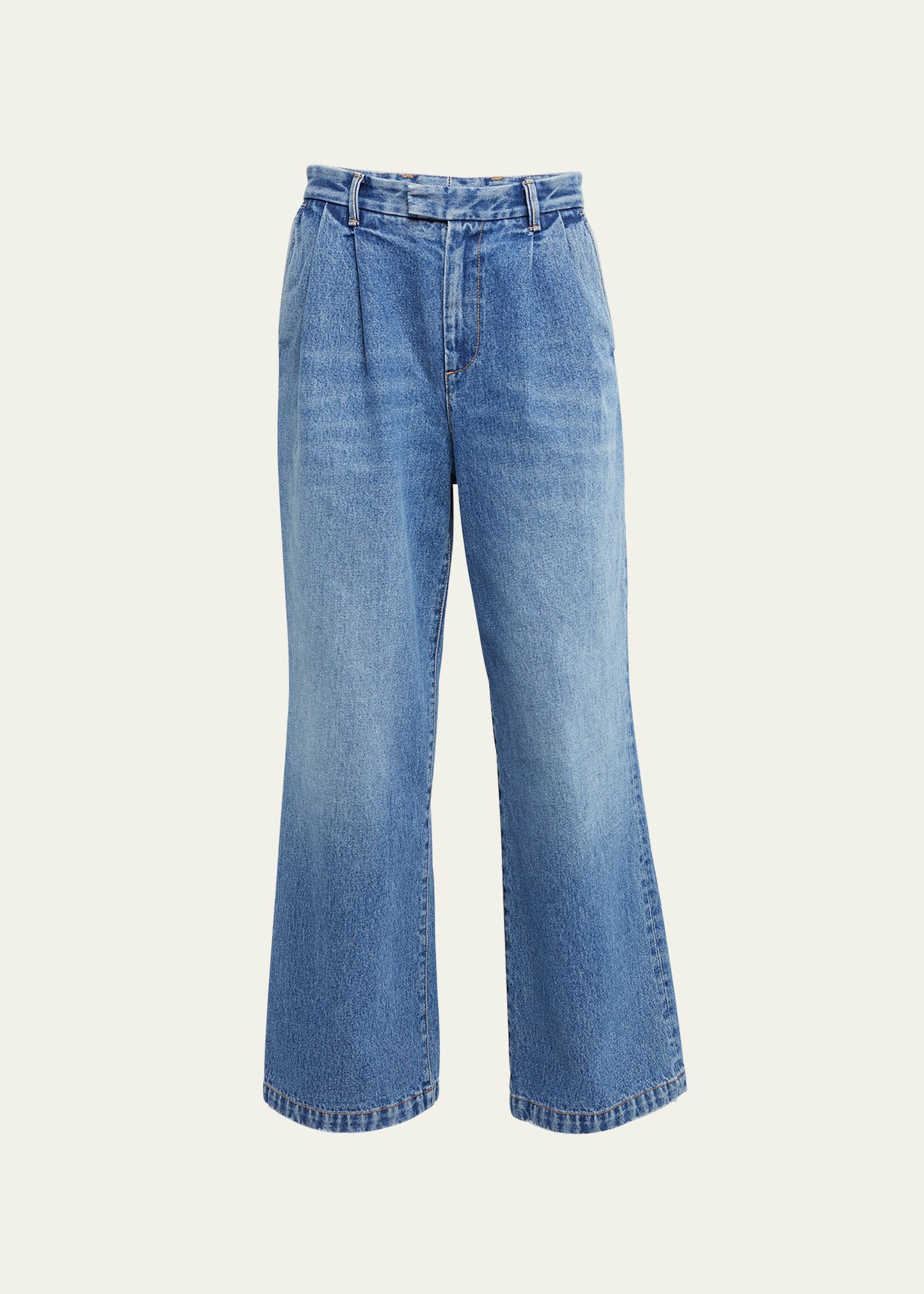 ARMARIUM "Giorgia" relaxed-fit denim pants Flat front Low rise sits at hip Button/zip fly; belt loops Side slip pockets; back welt pocket Wide legs Full length Cotton Do not iron, hand wash Made in Italy
