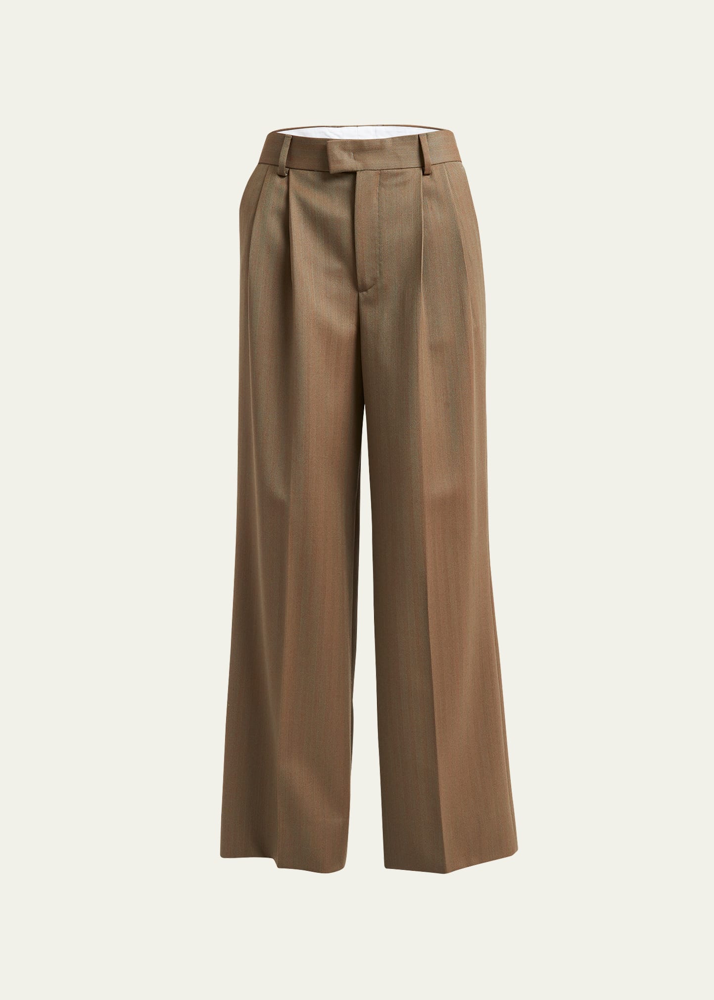 ARMARIUM "Giorgia" pants in Solaro wool High rise Pleated front Slanted side pockets Back welt pocket Full length Wide legs Hidden hook/zip fly; belt loops Wool Made in Italy