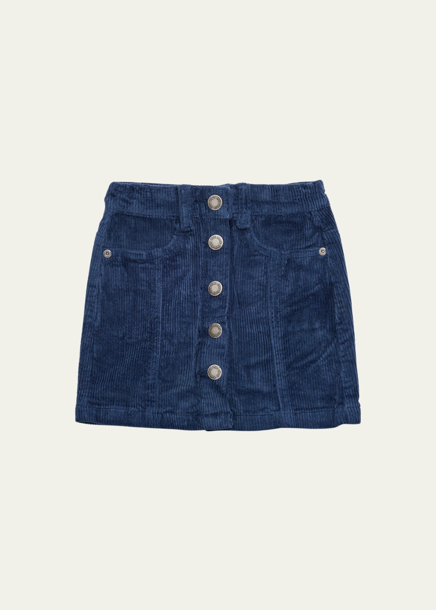 Molo "Bera" corduroy mini skirt Button/belt loops Elasticized waistband Slip buttons at front Knee-length Cotton/elastane Imported