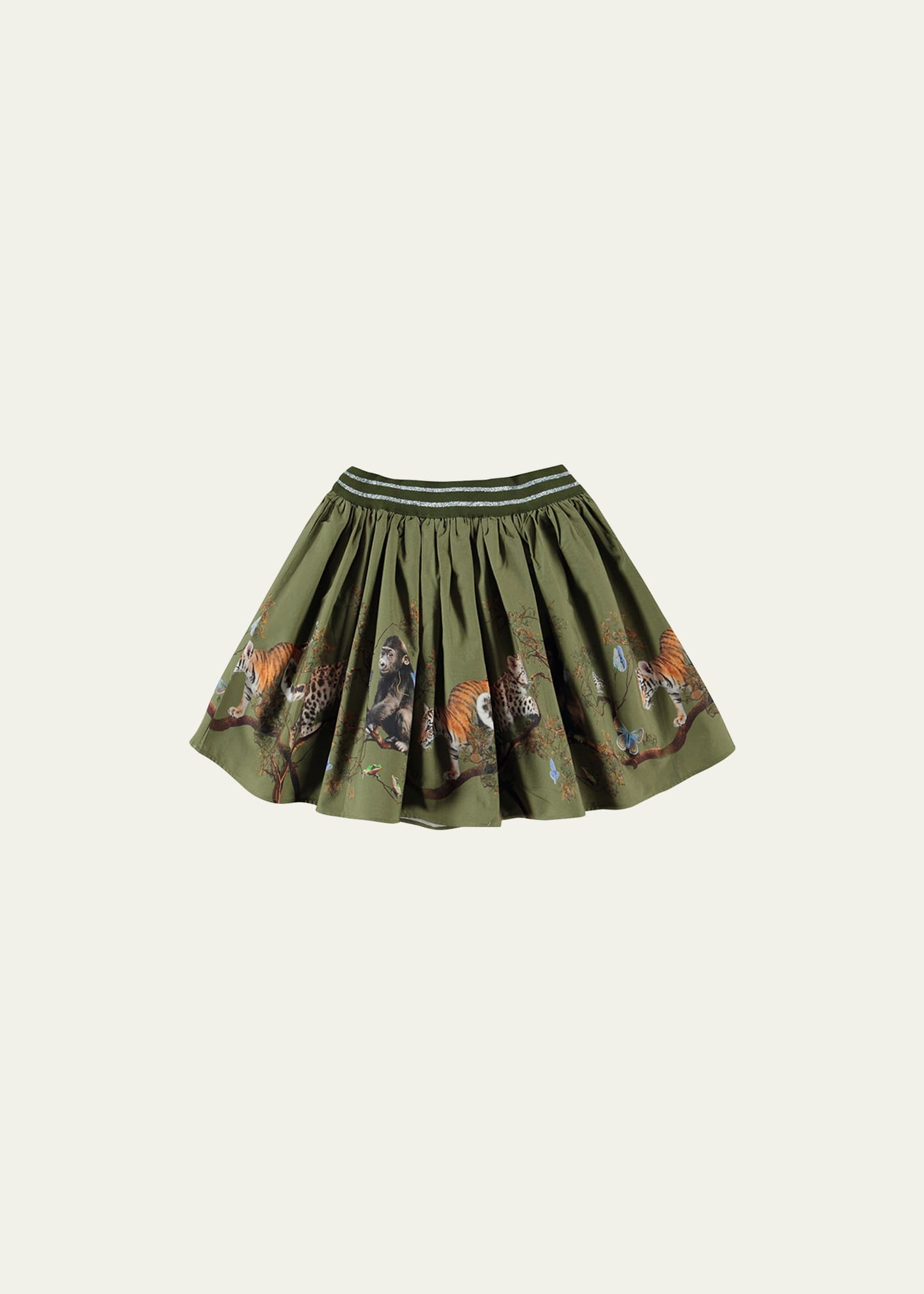 Girl's Brenda Woven Animals Skirt, Size 4-7