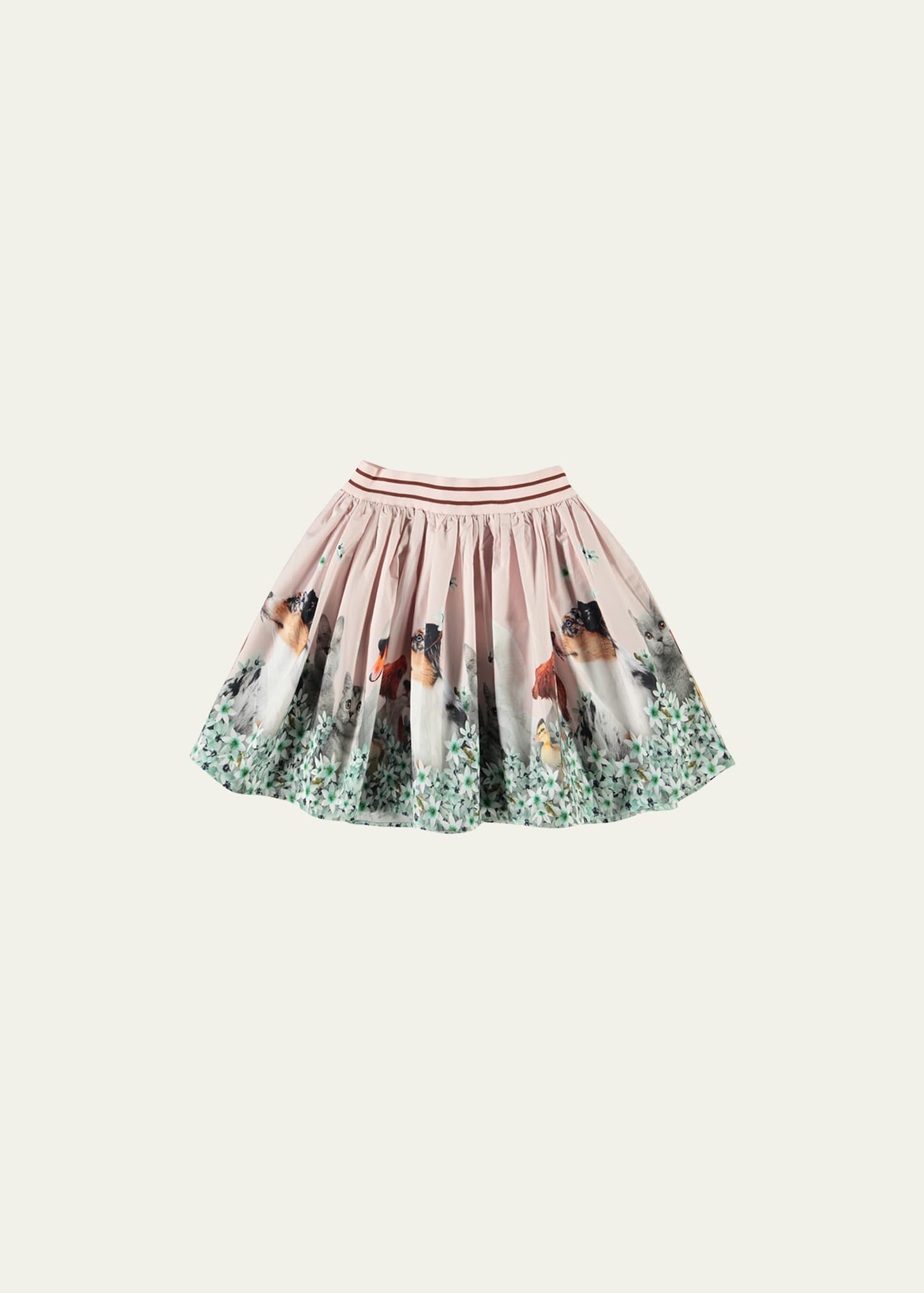 Molo "Brenda" woven skirt with design of big cats in tree branches Elasticized waistband A-line silhouette GOTS certified organic by ecocert greenlife, certification no. 197496 Organic cotton Machine wash cold Imported