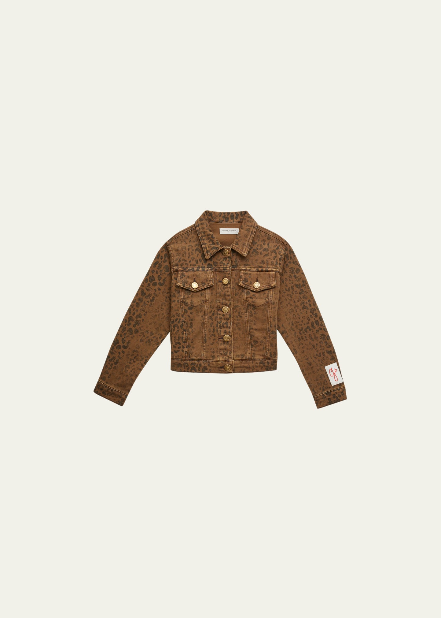 Golden Goose denim faded leopard-print jacket Spread collar Long sleeves Button cuffs Full button front Flap pockets Slip pockets Cotton/spandex Made in Italy