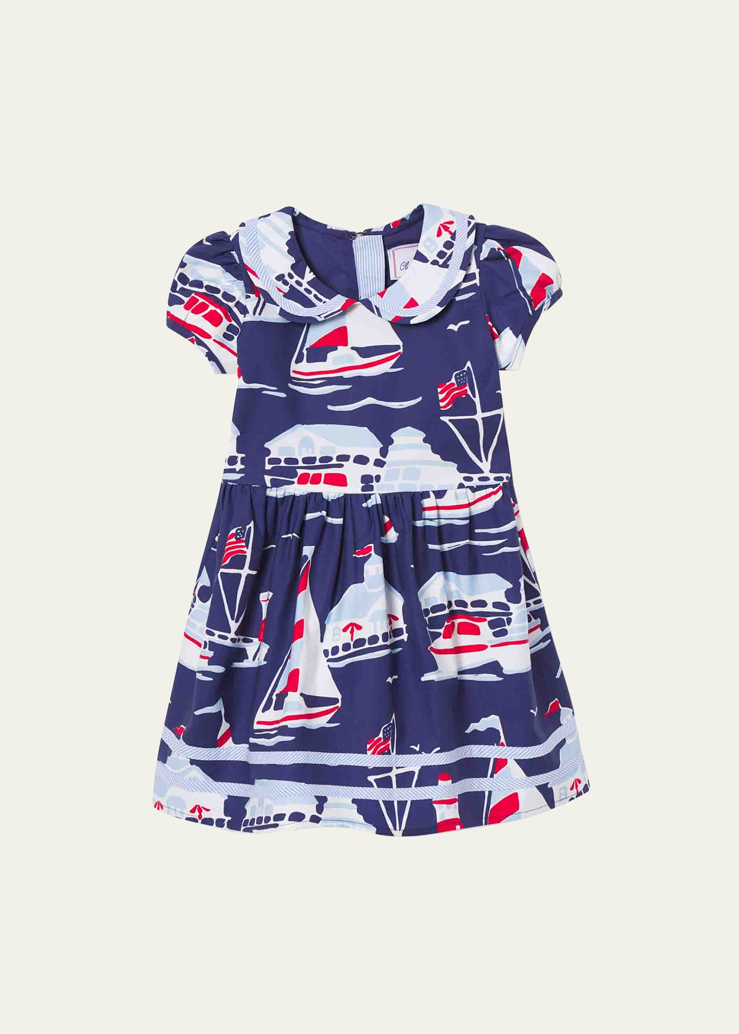 Classic Prep Childrenswear "Hazel" dress in "Five Mile River" print Peter pan collar; concealed closure Short sleeves Fit-and-flare silhouette Cotton/spandex Lining: cotton Machine wash cold Imported
