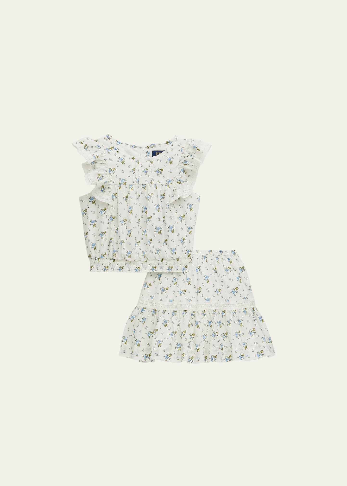 Girl's Floral-Print Lace Trim Top & Skirt Set, Size 2-4
