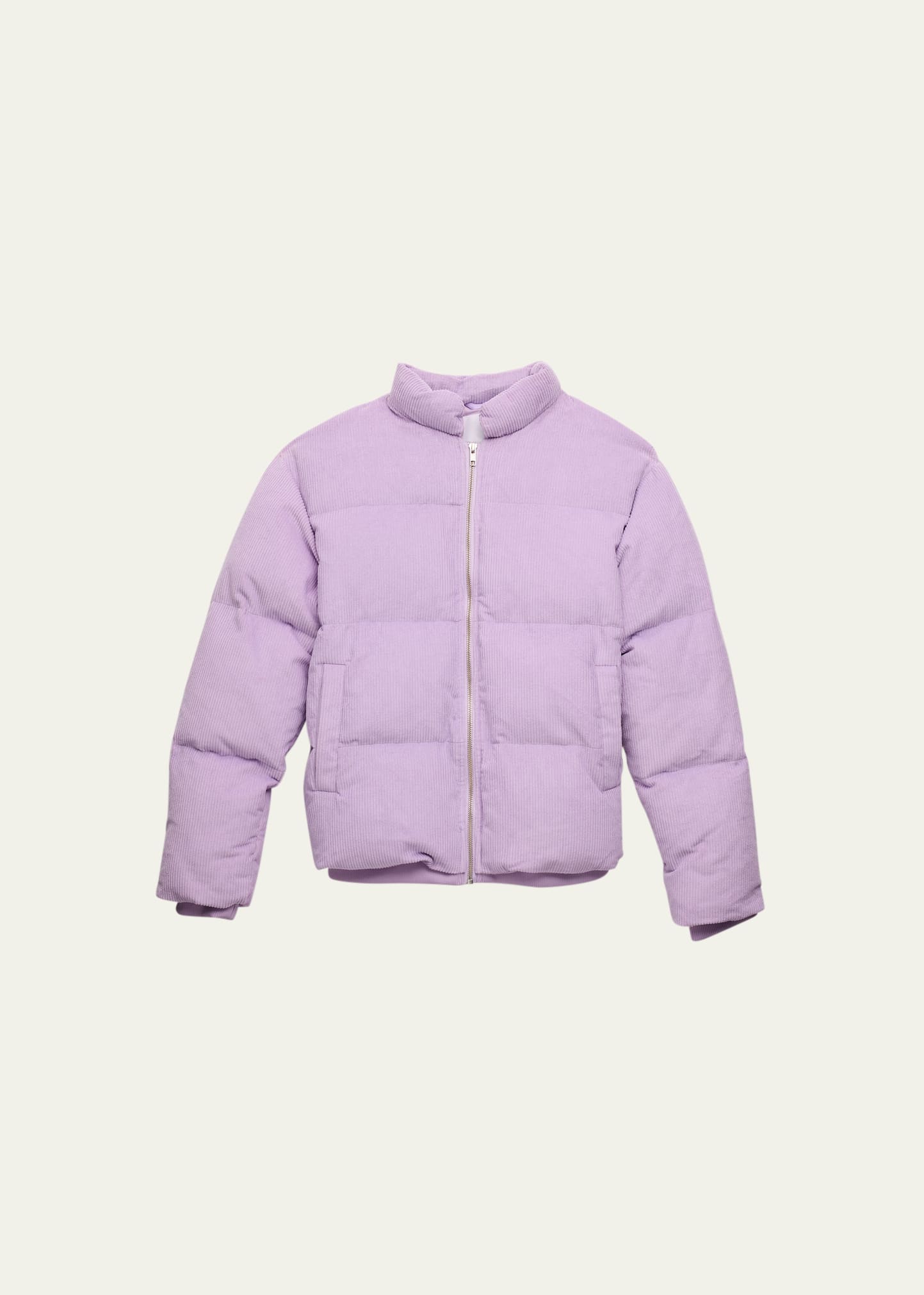 Molo "Helina" textured puffer jacket Stand collar Long sleeves Full zip front Welt pockets at front Banded cuffs and hem Ribbed trim Easy fit Cotton Imported