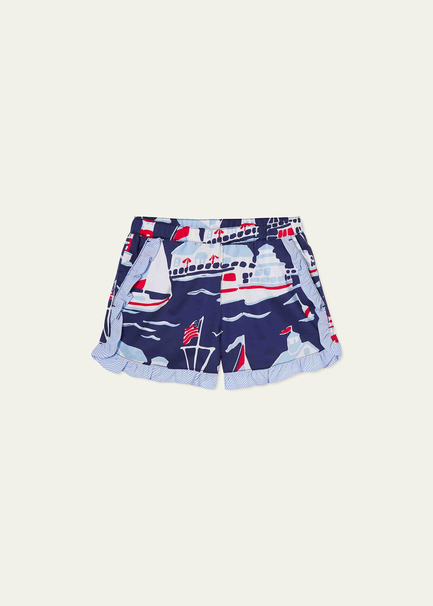 Classic Prep Childrenswear "Milly" shorts are dressed up with frilly ruffle trim Comfy elastic waistband Side slip pockets Pull-on style Cotton/spandex Unlined Imported