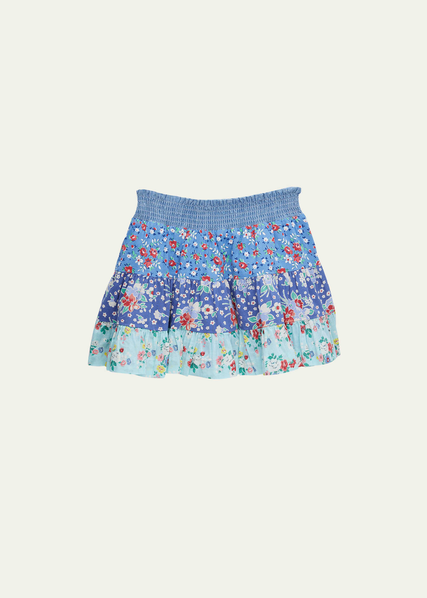 Ralph Lauren Childrenswear tiered cotton skirt features a mix of colorful floral-prints Elasticized waistband Stepin style A-line silhouette Cotton Machine washable Imported