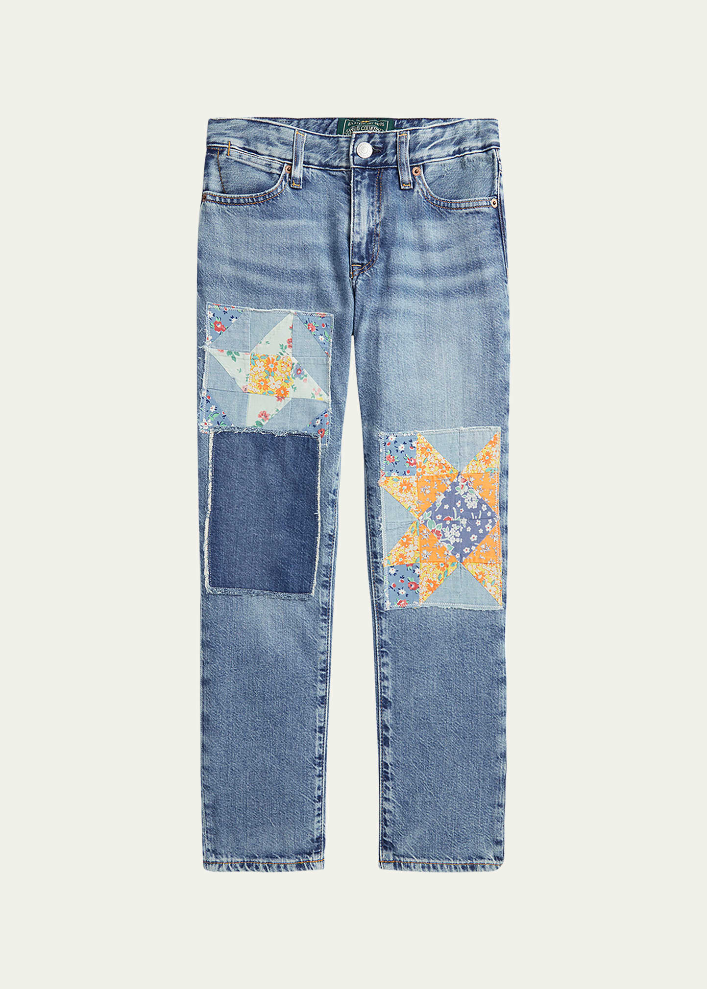 Ralph Lauren Childrenswear 3x1 rigid denim jeans with patchwork astor detail Slim boyfriend fit Five-pocket style Belt loops Zip fly with a signature button Cotton Machine wash Imported