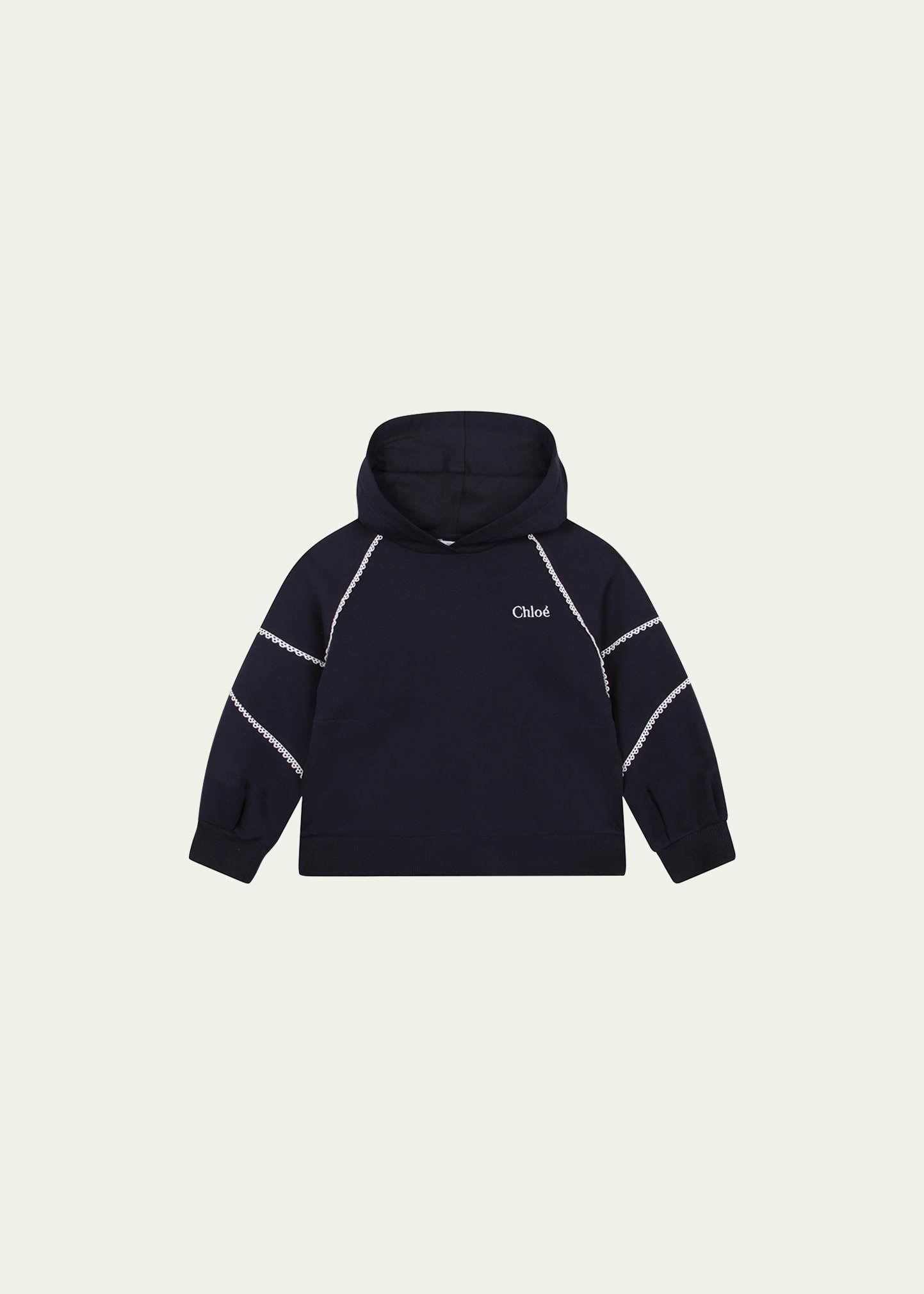 Chloé hoodie features signature scalloped trim with logo embroidered at chest Hooded neckline Long sleeves Banded cuffs and hem Pullover style Cotton Imported