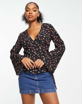 Tops by Glamorous Waist-up dressing Floral design Wrap front Tie waist Regular fit