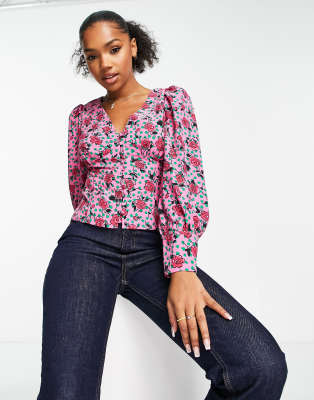 Tops by Glamorous Waist-up dressing Floral design V-neck Long sleeves Button placket Regular fit