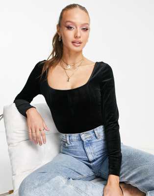 Tops by Glamorous A silhouette serve Square neck Long sleeves Thong cut Body-conscious fit