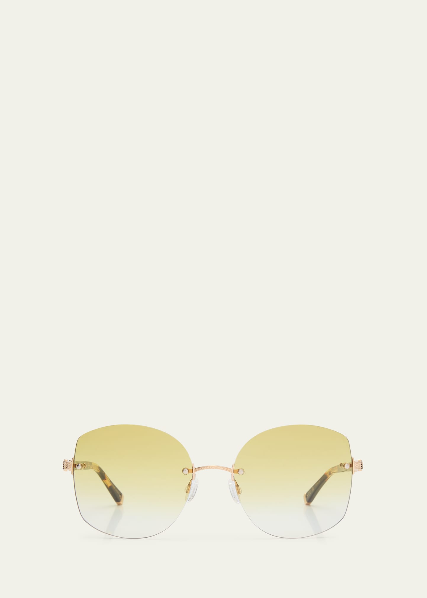 Barton Perreira "Gloria" rimless sunglasses in 24-karat gold-plated titanium and acetate Lens/bridge/temple (in mm): 58-20-145 Gradient lenses Adjustable nose pads Thin, tapered arms 100% UVA/UVB protection Made in Japan