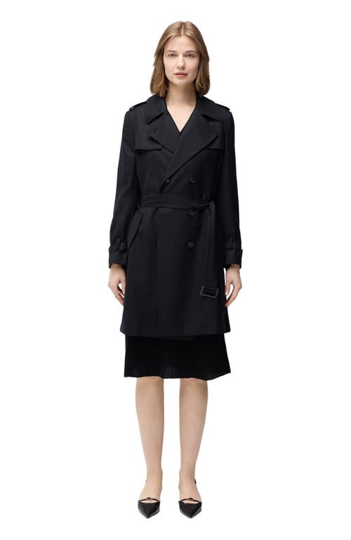 GOBI Mongolian Cashmere Double Breasted Cashmere Trench Coat in Black