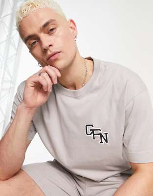Good For Nothing oversized T-shirt in stone gray with varsity logo print - part of a set