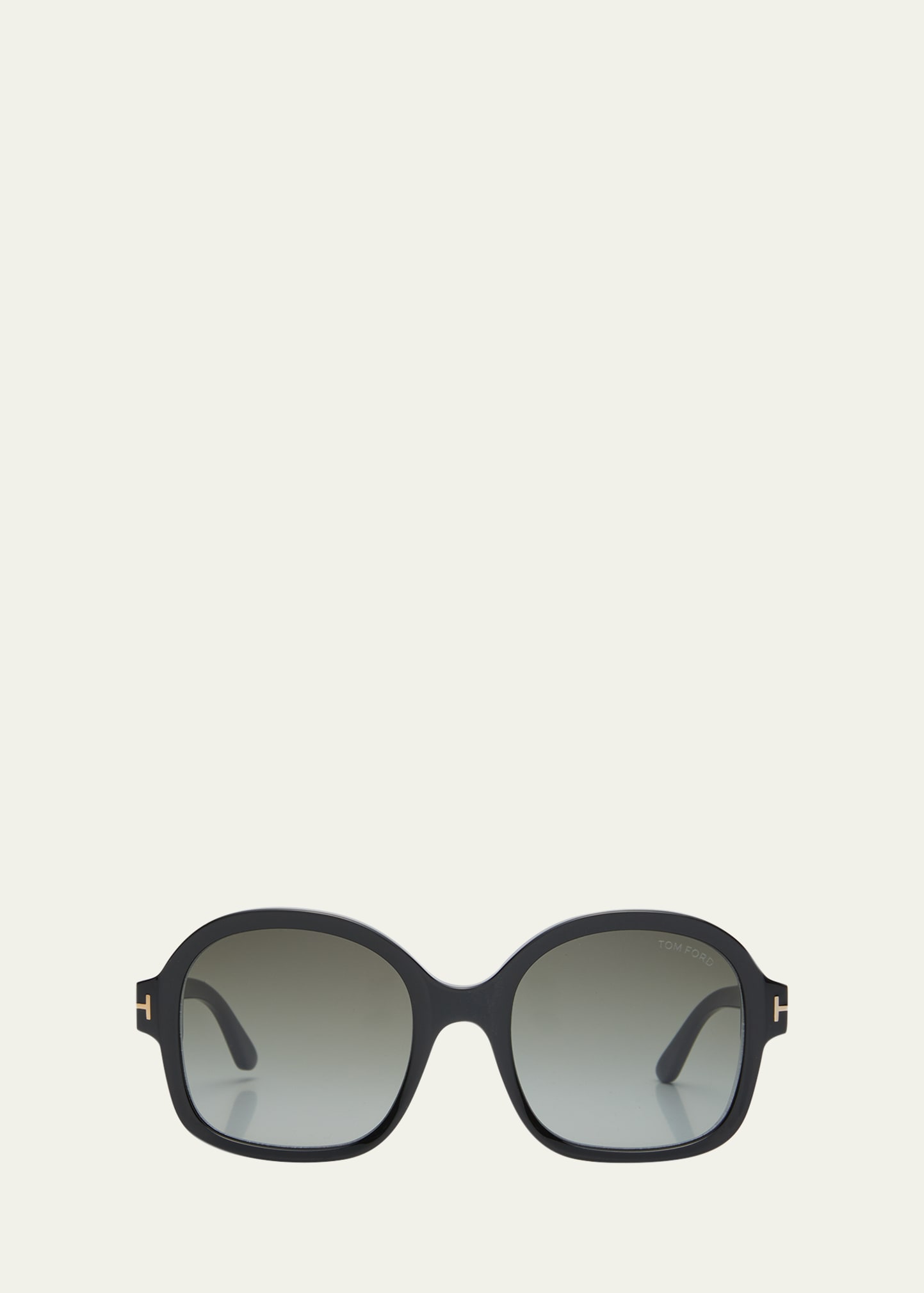 TOM FORD round sunglasses in acetate Lens/bridge/temple (in mm): 60 -15 -140 Gradient lenses; logo on corner Signature T hinges Thin, tapered arms Logo accent on earpieces 100% UVA/UVB protection Made in Italy