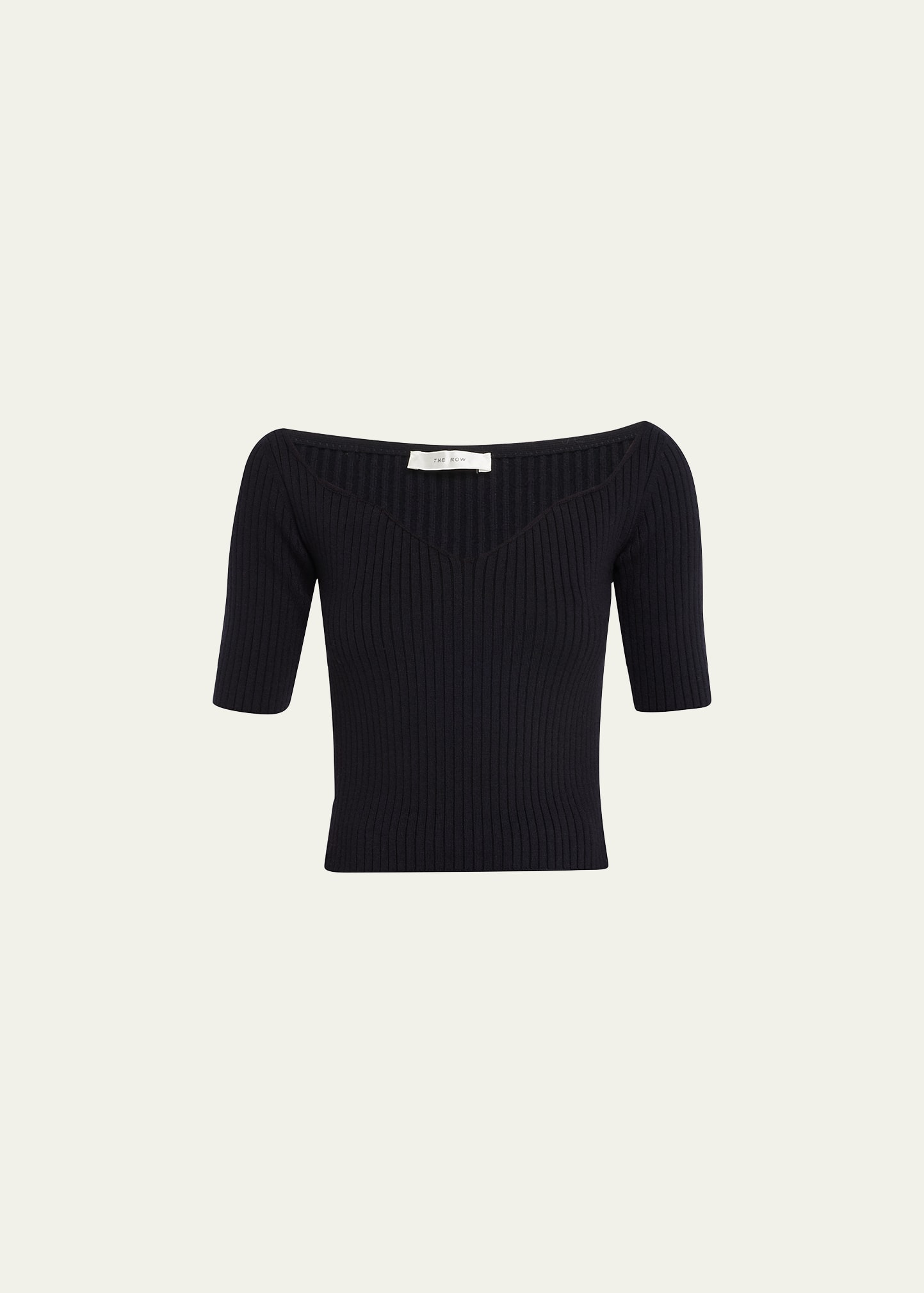 THE ROW "Grais" ribbed top in virgin wool Sweetheart neckline Short sleeves Hip length Fitted; pullover style Virgin wool Made in Italy