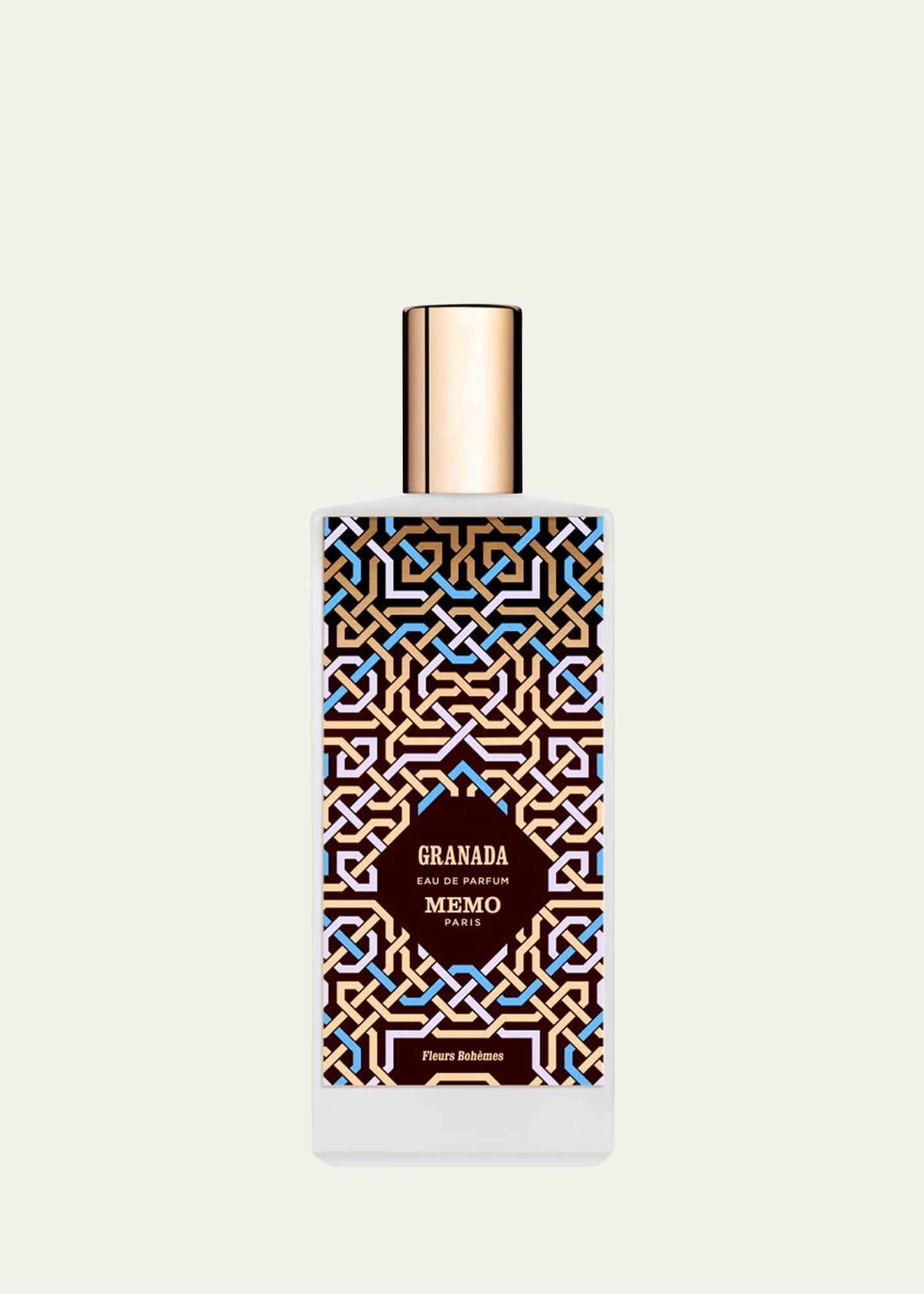 Memo Paris Granada Eau de Parfum Spray, 2.5 oz. Song of Andalusian Jasmine. Midnight in the gardens of the Alhambra, the red castle. The wandering breeze brings to mind love. Under the waving jets of the fountains, as silent as the petrified marble. With my eyes closed, hands stretched out: I sleepwalk in your perfume. Cradle-me, song of jasmine, take me in your arms, my orange blossom. How dark it is, the wood of your guitars. They weep in the moonlight. How dark their hair is, your gypsies.