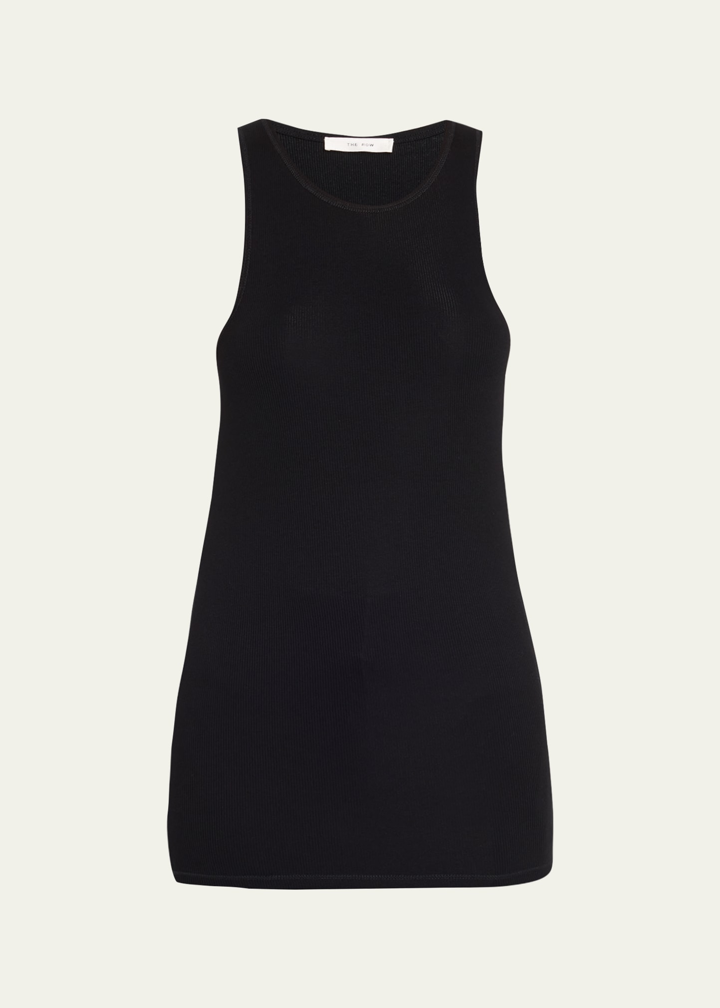 THE ROW "Halu" fine ribbed stretch racer-style knit tank top Round neckline Sleeveless Slim fit Pullover style Viscose/elastane Made in USA