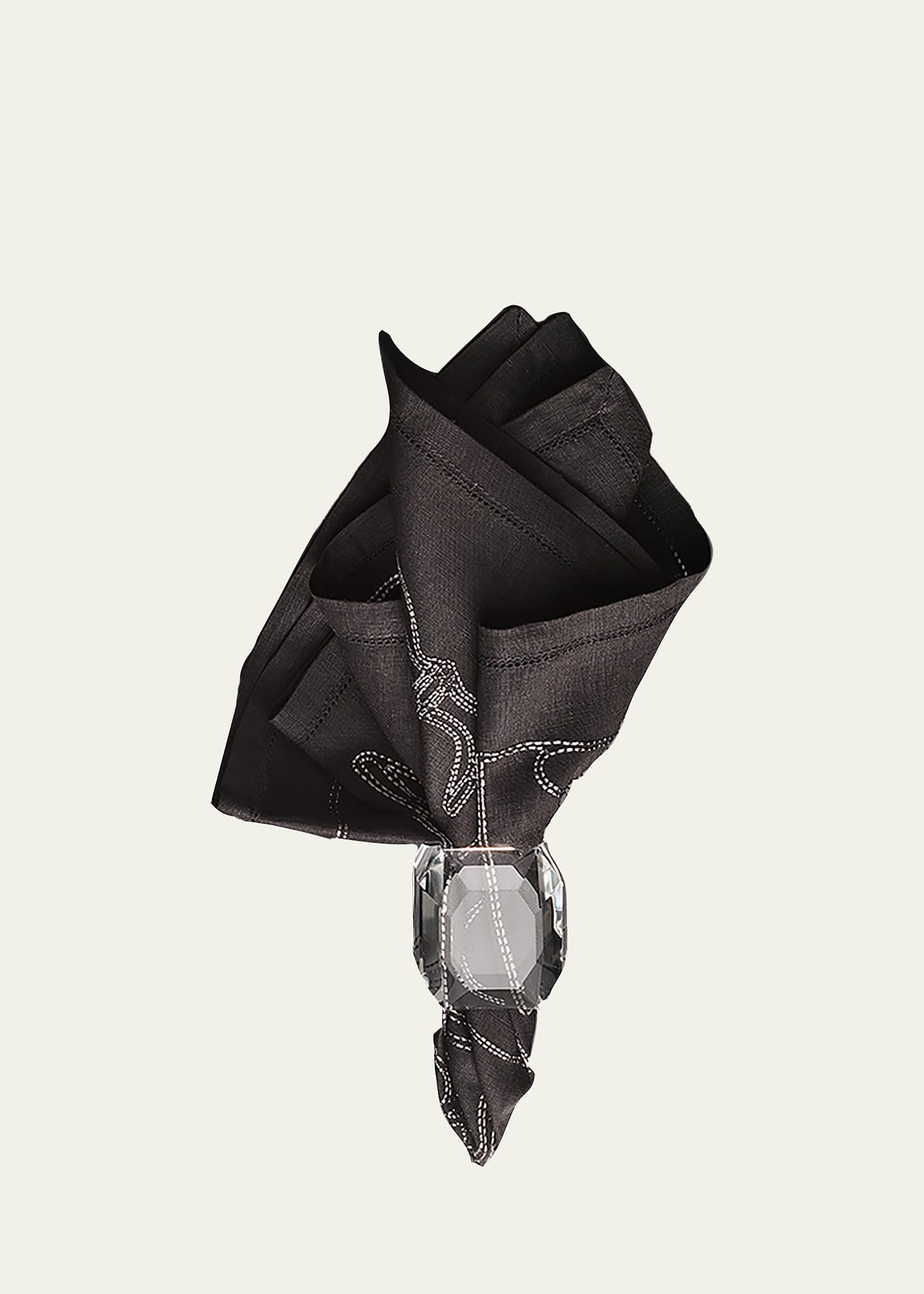 The Harcourt napkin features a unique pattern drawn from the architectural form of the classic Harcourt 1841 glass The beveled geometry of the glass design is outlined in metallic embroidery on crisp linen, showcasing the craftsmanship Four-piece set Approx. 21"L x 21"W Item Weight (Lbs.): 0.2 Machine wash cold Imported
