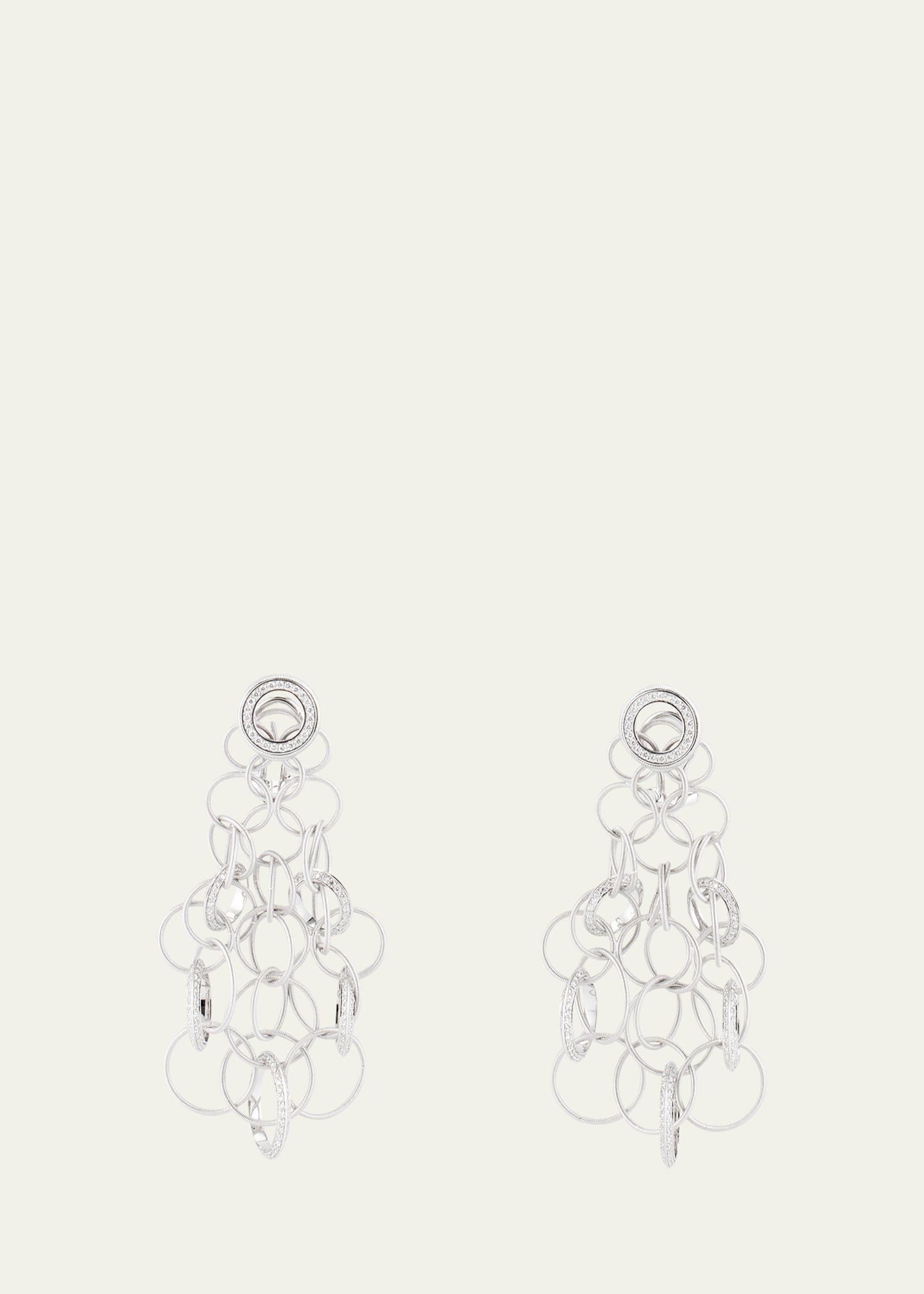 Buccellati earrings Approx. 2.75"L (7cm) 18-karat white gold Pavé white diamonds Total carat weight: 3.44 For pierced ears Made in Italy