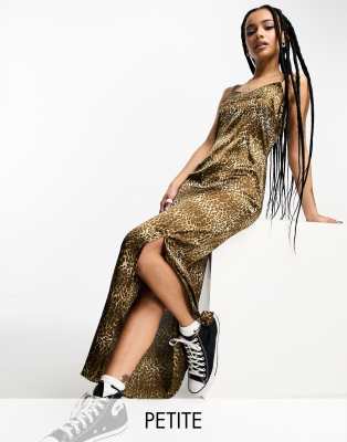 Heartbreak Petite satin cami maxi dress with side split in leopard print-Brown