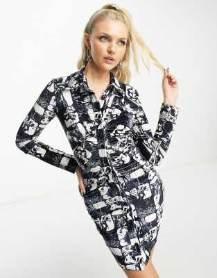 Dresses by Heartbreak Do get caught wearing it twice All-over print Spread collar Button placket Slim fit