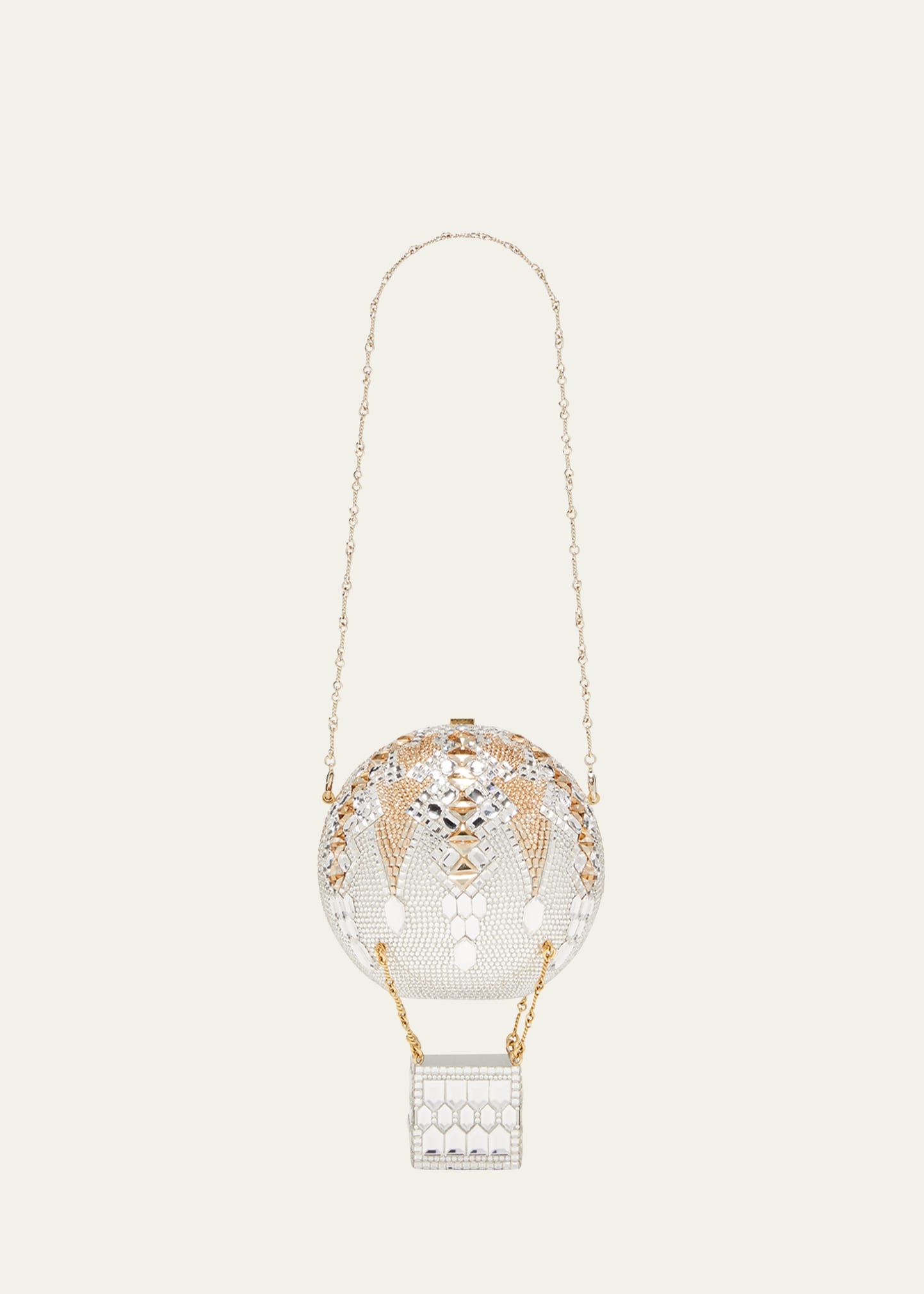 Judith Leiber Couture minaudiere bag in hot air balloon-shaped crystals Detachable elbow chain shoulder strap Framed top with push-lock closure Approx. 6"H x 3.5"W x 3.5"D Made in Italy