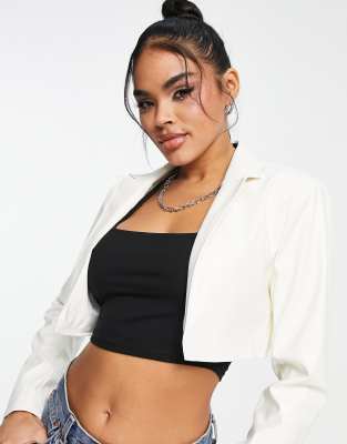 I Saw It First cropped leather look blazer in cream - part of a set-White