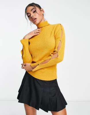 I Saw It First roll neck sweater with cut-out sleeves in mustard-Yellow