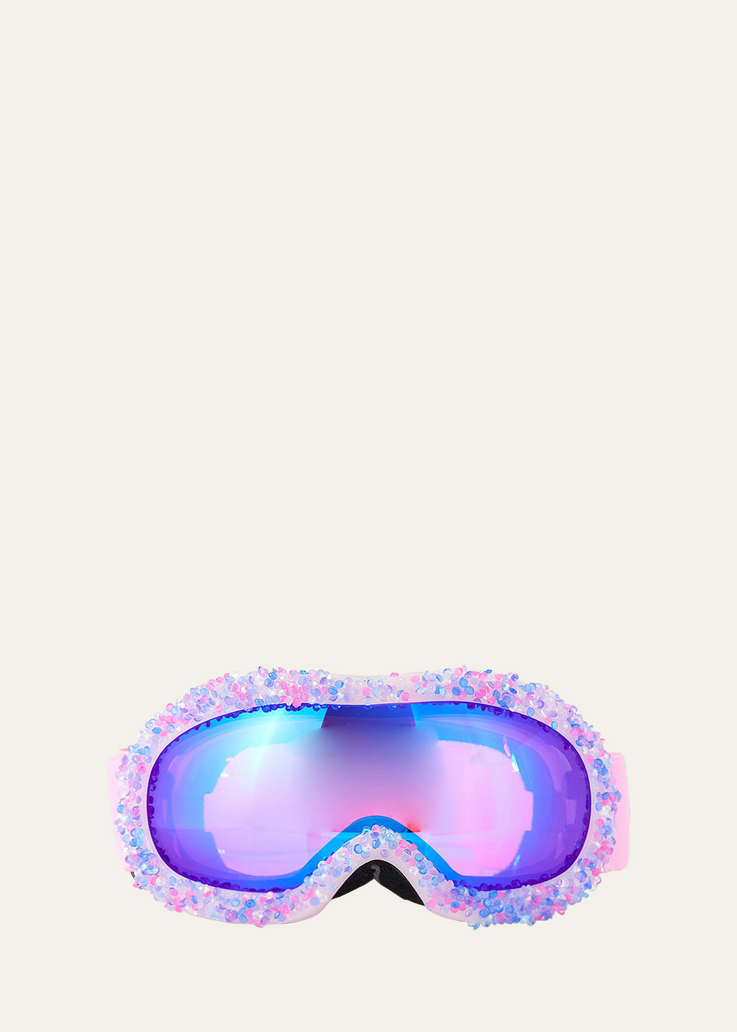 Make snow melt in ice of purple glaciers ski mask! this gorgeous mask features a frame covered in shards of glistening amethyst colored stones. Ice of purple glaciers includes a hard case for protection when not in use. Wipe clean Made in USA