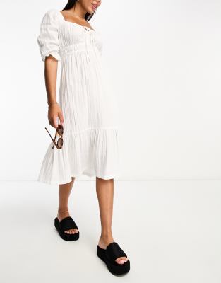 Dresses by Iisla & Bird All other dresses can go home Square neck Tie front Puff sleeves Regular fit