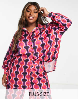 In The Style Plus oversized shirt in pink geo print - part of a set-Multi