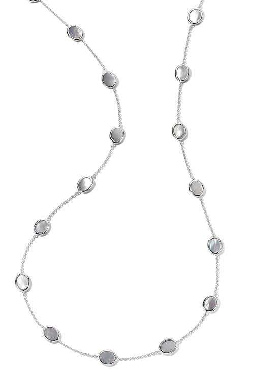 Ethereal slices of mother-of-pearl intersperse a long station necklace cast in sterling silver that can be wrapped for a shorter length as well. 35" length Sterling silver/mother-of-pearl Imported