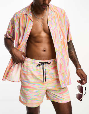 Jack & Jones Originals oversized revere collar shirt in trippy print - part of a set-White