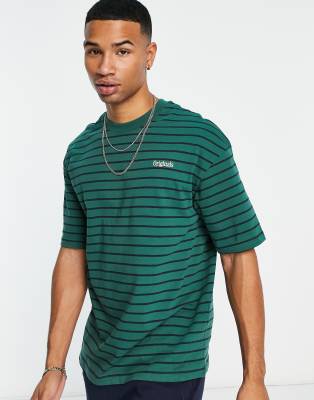 Jack & Jones Originals oversized stripe T-shirt with chest embroidery in green