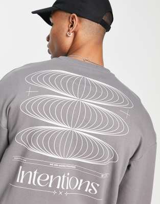 Jack & Jones Originals oversized sweat with intentions back print in dark gray