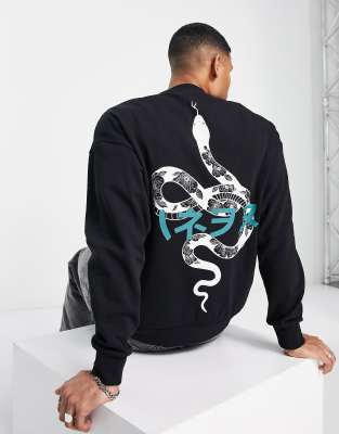 Jack & Jones Originals oversized sweat with snake back print in black