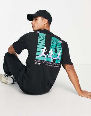 Jack & Jones Originals oversized T-shirt with LA back print in black