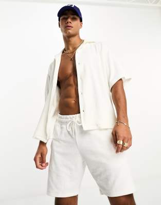 Jack & Jones Premium towelling revere collar shirt in white - part of a set-Neutral