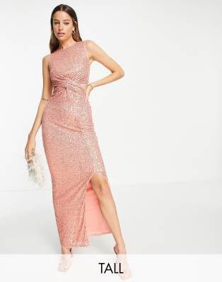 Jaded Rose Tall twist front maxi dress in bronze sequin-Copper