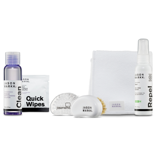 Stay on-point everywhere you go with the Jason Markk Starter Kit. The kit includes a gentle, foaming solution that effectively cleans and removes dirt and stain, and a general shoe cleaning brush. Safe to use on all colors and materials, including leather, suede, nubuck, canvas, vinyl, nylon, cotton mesh, and more, this kit is perfect to get you started and maintain your cleaning fix. Jason Markk Starter Kit features: 98.3% natural and biodegradable. Does not contain any harsh chemicals or abrasives. 2 oz. premium shoe cleaner cleans up to 50 pairs of shoes. Standard brush gives all-round cleaning with midsoles and undersoles.