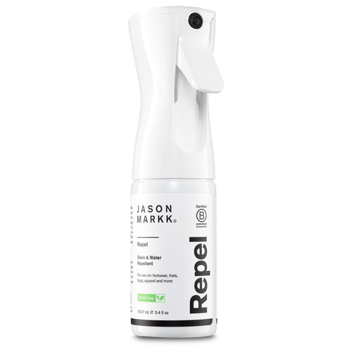 No one likes dirty sneakers. Keep your favorite pair of sneakers fresh as new with the Jason Markk Repel Spray Full Size. Creating a durable, breathable barrier that effectively repels liquids and stains, this ultimate sneaker accessory helps you keep your shoes looking pristine in the long run. The PFOA-free water-based formula is safe to use on all materials, including suede, nubuck, cotton, canvas, nylon, knit, and more. Protect your favorite sneakers from stains with the Jason Markk Repel Spray Full Size. Jason Markk Repel Spray Full Size features: Eco-friendly formula minimizes the effect on the planet. Water-based spray has no toxic odor or harmful dyes or colors. Reusable applicator and available refills help minimize the build-up of plastic in landfills. Propellent-free applicator dispenses a fine continuous mist that covers large areas quickly and evenly. *Eco-friendly formula. Repels stains and liquids. Reusable. Breathable.