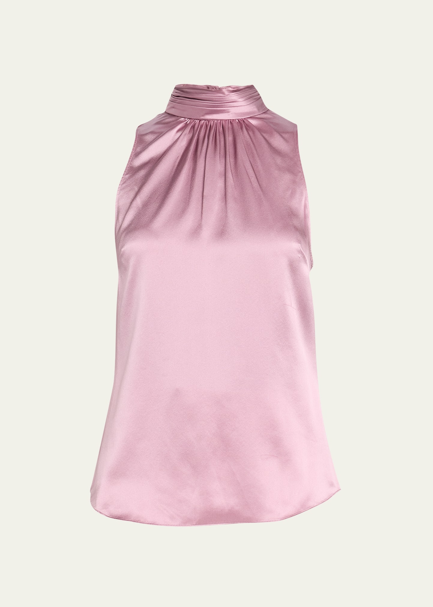 Cinq à Sept "Jaylee" blouse punctuated by an open-back detail Approx. 26" L from shoulder to hem Halter neckline; button closure behind neck Sleeveless Cutaway shoulders Relaxed fit Viscose Dry clean Imported