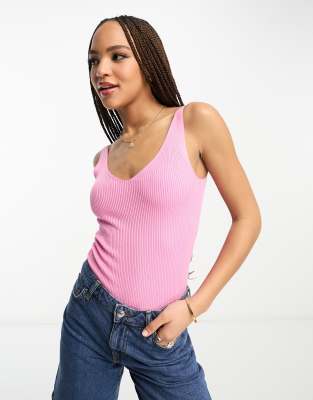JDY v neck knitted tank top in light pink