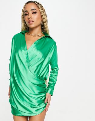 Mini dress by John Zack Love at first scroll Spread collar Wrap front Drape detail Regular fit