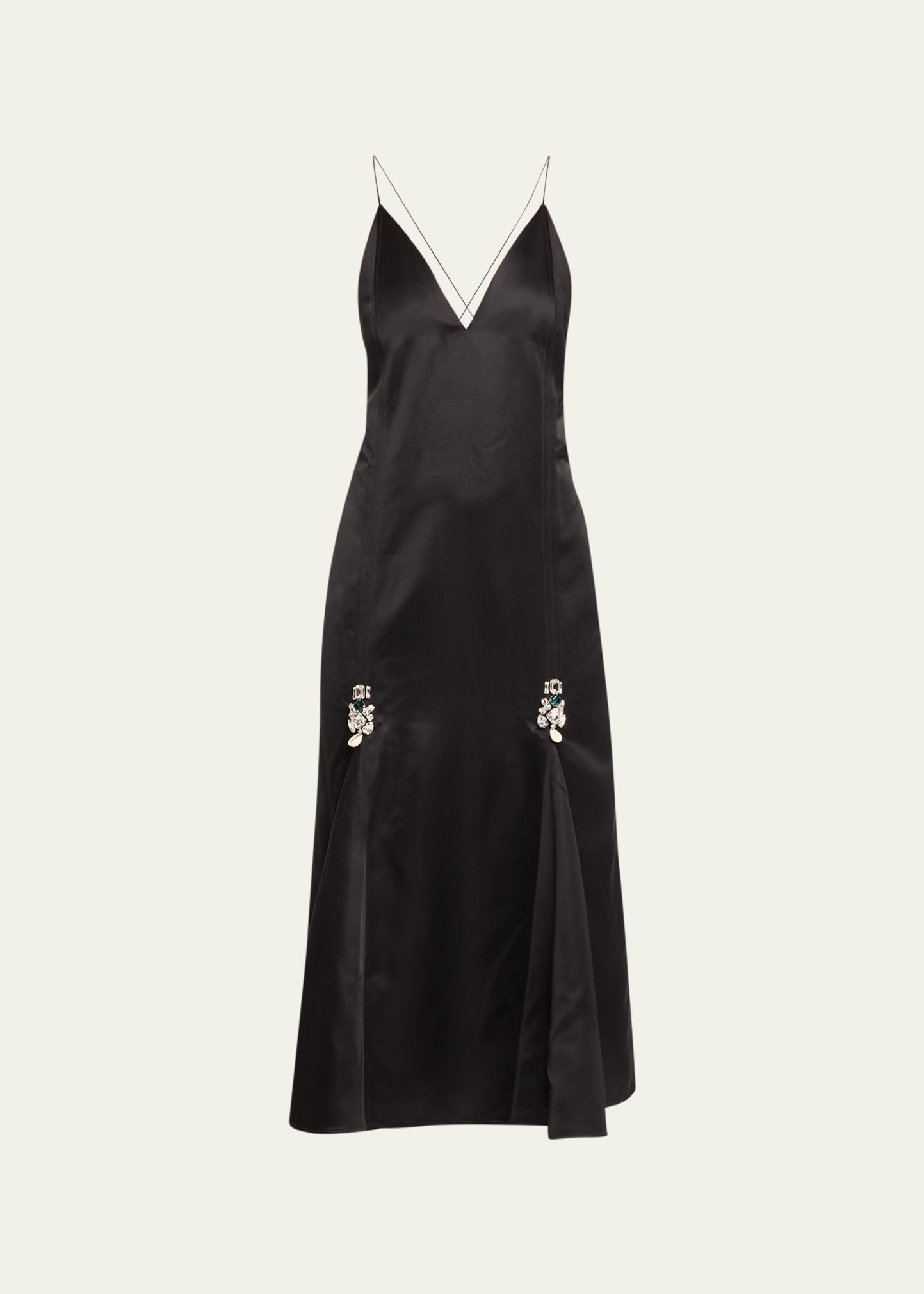 Wales Bonner "Josephine" slip dress embellished with crystal accents V neckline Sleeveless Crisscross spaghetti straps A-line silhouette Hem falls below the knee Viscose Dry clean Made in Poland