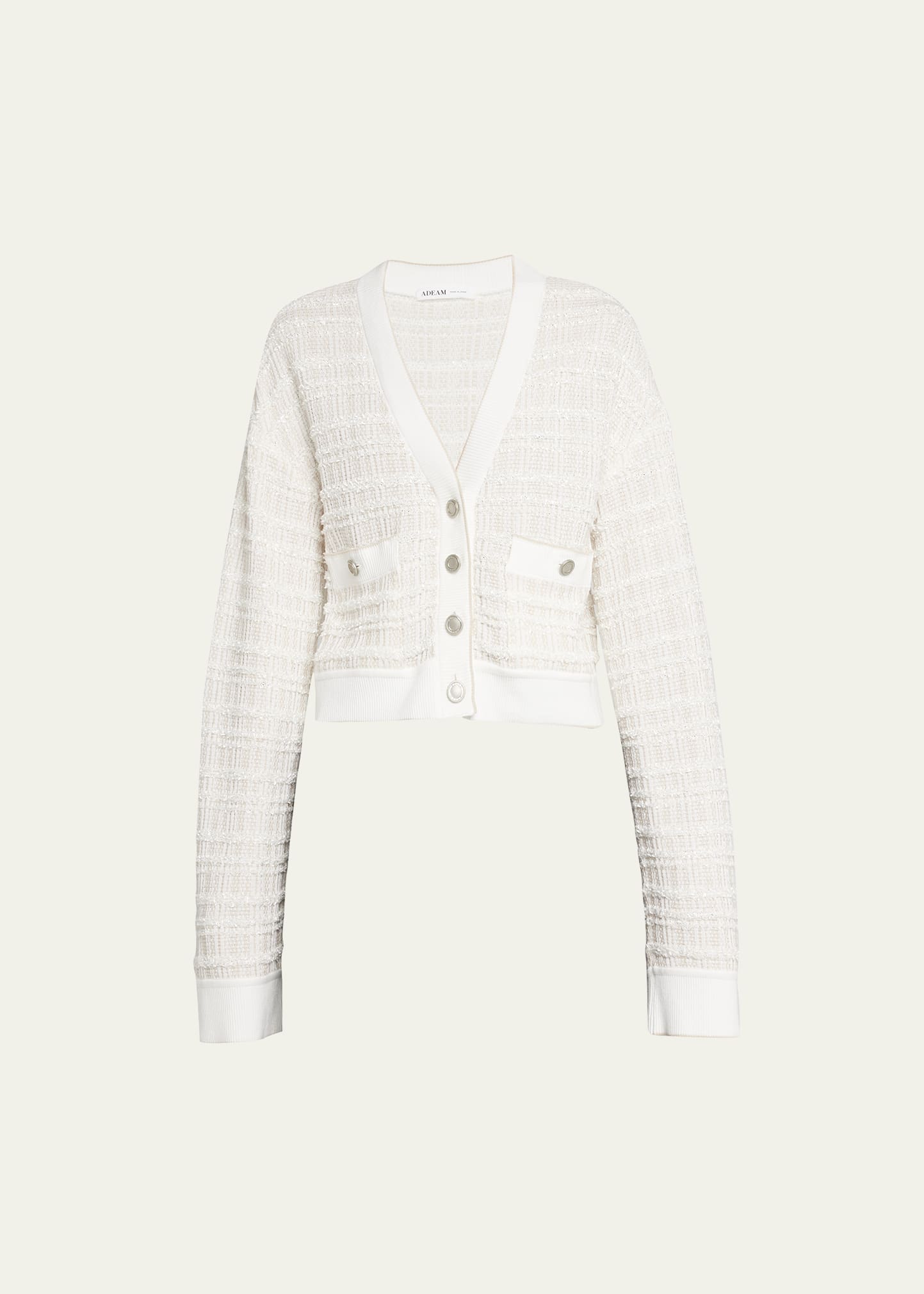 ADEAM "Kagura" knit cardigan V neckline; button front Long sleeves Hip patch pockets Relaxed fit Cotton/polyester Made in Japan